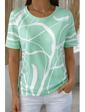 női gofrimintás póló nyári felsők színblokk nyomtatott grafikus geometrikus növények vintage stílusos klasszikus rövid ujjú kerek nyakú kerek nyakú normál felsők hétköznapi zöld szivárvány nyár