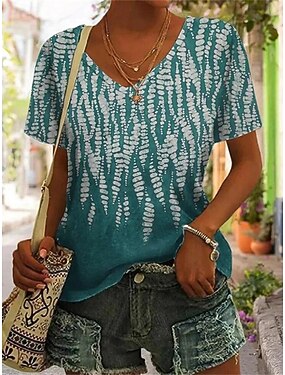 Női Póló Kivágott Gombok Nyomtatott Grafika Alap Rövid ujjú V-alakú Normál felsők Napi Hétvége Medence Arcpír rózsaszín Lóhere Khakizöld Szürke