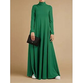 Női Midi ruha Karácsonyi ruha Divat Modern Szabadtéri Karácsony Alkalmi Laza öltözet Sima Hosszú ujj Magasnyakú Fekete Rubin Sötétkék Bíbor Ősz Tél