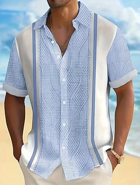 Férfi Mértani Csíkos Ing Alkalmi ing Gombos póló Rövid ujjú Alkalmi divat Szabadtéri Vakáció Szabadság Nyár Tavasz Térfogatcsökkenés 3D nyomtatás galléros ingek Világoskék Arcpír rózsaszín Khakizöld