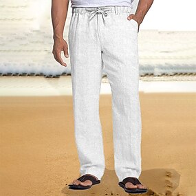 Férfi Vászon nadrág Nadrág Nyári nadrág Strand nadrág Zsinór Rugalmas derék Egyenes lábbal Sima Mokaszinok Légáteresztő Hétköznapi Napi Szabadság Divat Klasszikus stílus Fekete Fehér