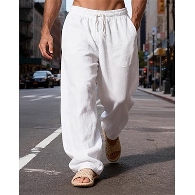Férfi Vászon nadrág Nadrág Nyári nadrág Strand nadrág Zseb Sima Mokaszinok Légáteresztő Vakáció Napi Szabadság Hawaii Boho Fehér Égszínkék