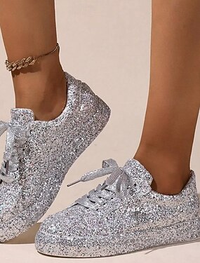 Női Tornacipők Bling Bling cipők Fantasy cipők Csillogó cipő Szabadtéri Napi Flitter Lapos Kerek orrú Divat Sportos Alkalmi Csillám PU Fűzős Ezüst Fekete