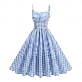 Retró 1950-es Hepburn Déli Ruhák Egy vonalú ruha Flare ruha Spagetti pántok Kockás Karcsúsított Jelmez Női Farsang Valentin nap Hétköznapi Hazaérkezés Retro témájú buli Felnőttek Ruha Nyár Tavasz