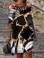 Nők Elegáns Parti Estélyi Midi Ruha Kerek Nyakú Rövid Ujjú Hétköznapi Ruha Átmeneti Ruha Nyári Ruha Vintage Munka Hétköznapi Laza Fit Geometrikus Szürke Nyár