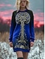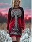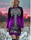 Női pulóverruha miniruha váltóruha casual nyaralás ünnep szórakozás normál szabás virágos grafika geometrikus hosszú ujjú kerek nyak rozsdás piros lila khaki ősz téli