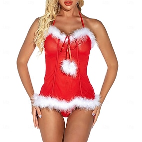 Mikulás Mrs.Claus Babydoll fehérnemű Teddy body Női Rossz Elegáns hálóruhák Felnőttek Karácsony Újév Parti Otthoni viselet