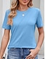 Női Póló Egyszínű Egyszerű Divatos Klasszikus Kényelmes Rövid Ujjú Kerek Nyak Rendszeres Felsők Mindennapi Hétvége Aszimmetrikus Fekete Fehér Katonai Zöld Tengerészkék Nyár