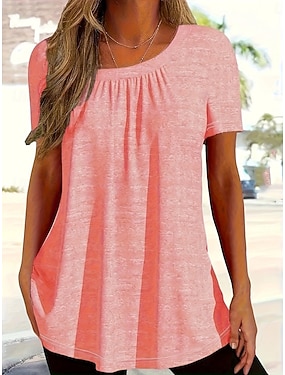 Womens Póló Egyszínű Mindennapi Stílusos Kényelmes Rövid Ujjú Kerek Nyakú Rendszeres Felsők Mindennapi Kék Rózsaszín Lila Nyár Tavasz