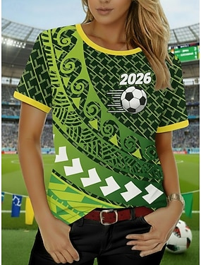 Női Póló Tee Top Nyomtatott Grafika Futball Stílusos Klasszikus Alkalmi Rövid ujjú V-alakú Normál felsők Napi Sport Alkalmi Medence Lóhere Nyár Tavasz