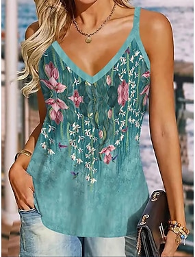 Női Atléta Nyomtatott Ombre Virágos Szöveg Csehország Divat Stílusos Ujjatlan V-alakú Normál felsők Napi Alkalmi Hétvége Medence Fekete Bíbor Lóhere Khakizöld Nyár Tavasz