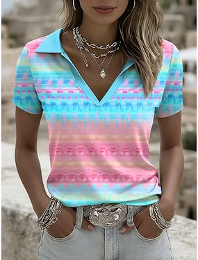 Női Póló Színes Nyomtatott Grafika Mértani Stílusos Klasszikus Alkalmi Rövid ujjú Polo gallér Normál felsők Hétköznapi Napi Alkalmi Medence Rubin Bíbor Lóhere Nyár Tavasz