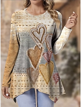 Női Tunika Nyomtatott Szív Grafika Absztrakt Elegáns Szüret Divat Hosszú ujj Terített nyak Kerek Hosszú felsők Napi Hétvége Khakizöld Tavasz Ősz Tél