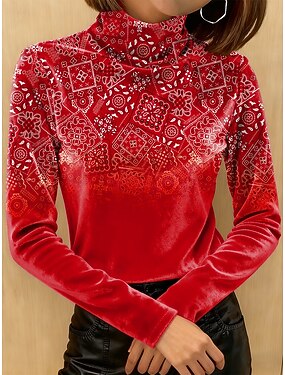 Női Pólók Nyomtatott Grafika Absztrakt Geometria Elegáns Szüret Divat Hosszú ujj Magasnyakú Normál felsők Napi Alkalmi Hétvége Medence Sárga Bíbor Lóhere Ősz