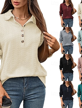 Női Ing Vaffel kötött topok Zseb Gombok Sima Divat Alap Klasszikus Hosszú ujj Polo gallér Henley Normál felsők Napi Alkalmi Hétvége Medence Bíbor Narancssárga Khakizöld Tavasz Ősz Tél