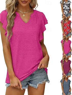 Női Blúz Fodrozott Sima Modern Alkalmi Rövid ujjú V-alakú Normál felsők Napi Alkalmi Piros rózsaszín Fekete Fehér Bor Nyár