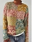 Női Pulóver Szüret Napi Alkalmi Virágos Bordázott Terített nyak Kötött Nyomtatott Hosszú ujj Normál felsők Kötött Szabadtéri Hétvége Arcpír rózsaszín Ősz Tél