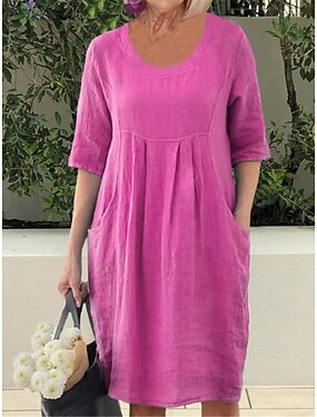 Női Mini ruha Műpamut ágynemű Váltó ruha hétköznapi ruha Alap Modern Napi Hétvége Laza öltözet Sima Féhosszú Terített nyak Sötétkék Égszínkék Lóhere Rózsapiros Nyár Tavasz