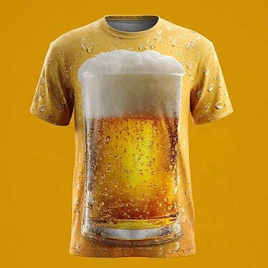 Férfi Színes 3D Sör Ing Póló Rövid ujjú póló Kerek Ing Alap Alkalmi Hétvége Sárga Sötétzöld Lóhere Ruházat Extra méret S M L XL 2XL 3XL 4XL