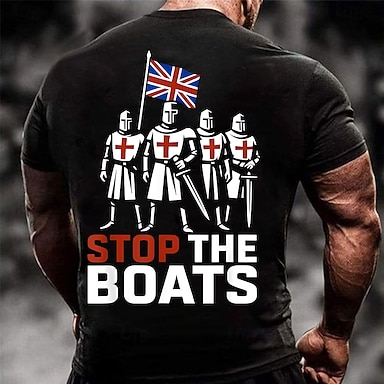 Férfiak Patriotikus Grafikai Póló 'Állítsuk Meg A Hajókat' Brit Lovagok Unió Zászló Mintával Rövid Ujjú Póló