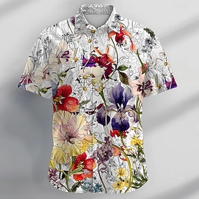 Férfi Virágminta Trópusi virágok Hawaii ing Gombos póló Aloha ing Rövid ujjú Hawaii Szabadság Strandruházat Nyár Tavasz Térfogatcsökkenés 3D nyomtatás galléros ingek Első egy zseb Fehér
