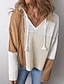 Női Pulóver Alkalmi Színes Bordázott V-alakú Kollázs Kötött Hosszú ujj Normál felsők Kötött Napi Szabadság Alkalmi Fehér Medence Ősz