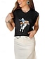 Női Pulóver Pulóver mellény Divat Utcai sikk Alkalmi Grafika Terített nyak Kötött Nyomtatott Ujjatlan Normál felsők Kötött Napi Szabadság Alkalmi Fekete Fehér Nyár Ősz