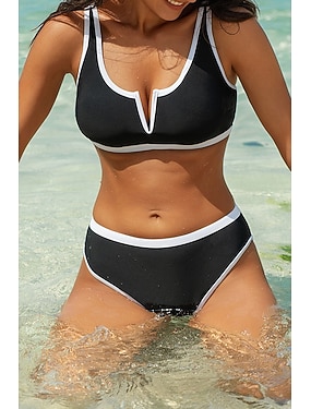 Női Bikini 2 Részes Fürdőruha Színblokkolt Alsók Slim Hátsó nélkülözött Nyaralás Strandruha Színblokk U Nyak Ujjatlan Fürdőruhák