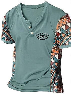 Férfi Henley ing Raglan póló Grafikai nyomatok Indián Henley Ruházat Szabadtéri Napi Rövid ujjú Kollázs Redők Divat Dizájn Stílusos Szüret