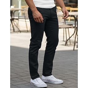 Férfi Nadrág Pamutszövet nadrág Chino nadrág Elülső zseb Sima Mokaszinok Légáteresztő Teljes hossz Szabadtéri Hétköznapi Napi Divat Klasszikus stílus Fekete Fehér Mikroelasztikus