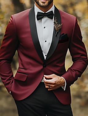 Férfi Esküvő Parti ruhák Sálhajtóka Burgundi vörös Divat Előírásos Egyszínű Standard 2 részes készlet Egysoros egy gombos