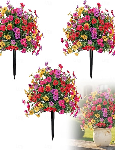 20 csokor művirág kültéri használatra, színes, valósághű tavaszi kültéri műselyemvirágok, UV-álló művirágok &kültéri növények verandára, cserépbe, ablakládába, virágláda töltőanyagként, virágdekoráció