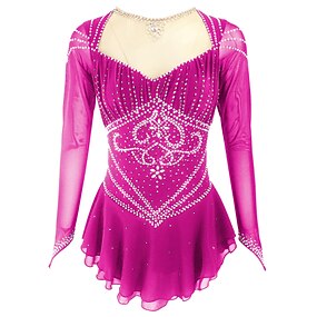 Kűrruha Női Lány Klizanje na ledu Ruhák Felszerelések Világos bíbor Yan rózsaszín Ibolya Spandex Nagy rugalmasságú Gyakorlat Kűrruhák Kézzel készített Divat Hosszú ujj Jégkorcsolyázás Téli sportok