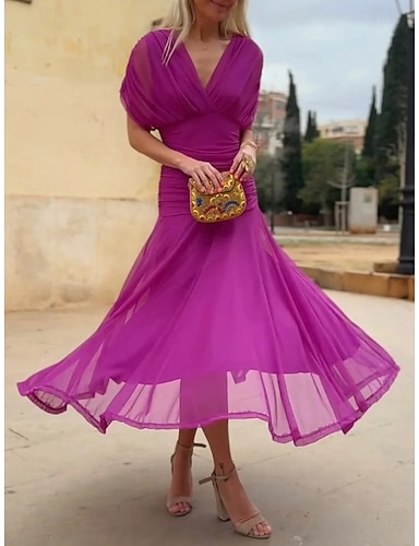 Női Midi ruha Hüvelyruha Szabadság Születésnap Tengerpart Parti Alkalmi Normál Tömör szín Rövid ujjú V-alakú sötétbarna Mély zöld Haditengerészet Rubin Nyár Tavasz