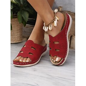 női piros kényelmes szandálok, lélegző, kivágott sétaszandálok állítható pántokkal utazáshoz, nyári hétköznapokra &mindennapi viselet