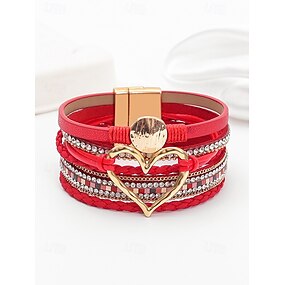női bohemia bohemiafaux bőr szív alakú karkötő - stílusos, csillogó strasszokkal díszített, tökéletes karácsonyi és Valentin-napi ajándéknak