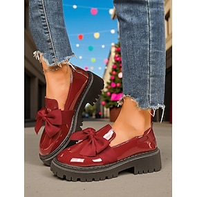 Női Bordó Patent Bőr Slip-On Loafer Bojttal – Vastag Platform Cipők Kényelmes Kimenetekhez Napi Használatra és Karácsonyi Ünnepekhez