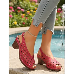 női piros, slingback, peep toe, sarkú szandál kivágással – kényelmes, nyitott orrú cipők Valentin-napra, hétköznapi összejövetelekre és hétköznapi viseletre