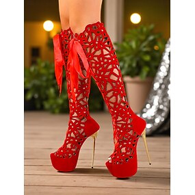 női kivágott térdig érő tűsarkú platform csizma szexi peep toe magassarkú éjszakai élethez, partikhoz és klubruhához