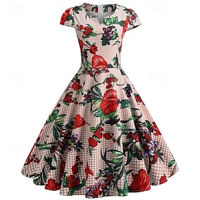 Elegáns Κλασσική 1950-es Ruhák Virágos A-vonalú Jelmez Női Valentin nap Esemény / Buli Randi Zsúr Felnőttek Ruha Tavaszi nyár