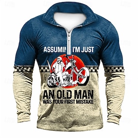 Férfi Hosszú Ujjú Grafikus Póló Biker Idézettel 'Azt feltételezve hogy csak egy öreg ember vagyok volt az első hibád' Vicces Negyed-Zip Póló