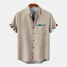 Férfi Ing vászon ing retro ingek Vintage ing Etnikai póló Törzsi Napi Barna Lóhere Szürke Rövid ujjú Térfogatcsökkenés Nyár Tavasz Ruházat
