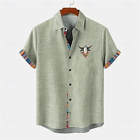 Férfi Etno Vászon ing Hawaii ing Gombos póló Rövid ujjú Hawaii Üdülő Vakáció Szabadság Strandruházat Nyár Tavasz Térfogatcsökkenés 3D nyomtatás galléros ingek Medence Lóhere Khakizöld