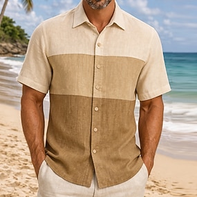 Férfi Vászon ing Nyári póló Strandruházat Gombos póló Sima Hétköznapi Tengerpart Fekete Fehér Világoszöld Arcpír rózsaszín Rövid ujjú Térfogatcsökkenés Nyár Ruházat Sima