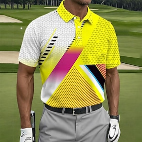 Férfi Geometriai Golf Sportpólóingek Rövid ujjú Pólóingek Galléros ingek Alkalmi Sportruházat Gombok Nyár Tavasz Medence Sárga Rubin