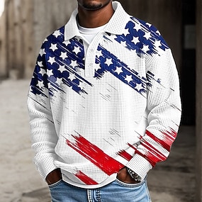 2026. július 4. 250. Férfi Amerikai amerikai zászló Póló Texturált Hosszú ujj Pólóingek Hajtóka Alkalmi Sportruházat Hétköznapi viselet 3D nyomtatás Tavasz Ősz Tél Fehér 1 Fehér 2
