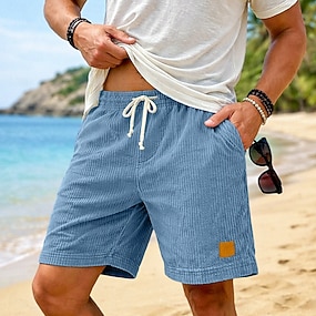 Férfi Nyári rövidnadrág Strand rövidnadrág Alkalmi rövidnadrág Corduroy Shorts Zsinór Rugalmas derék Tömör szín Mokaszinok Légáteresztő Térdhossz Napi Szabadtéri Tengerpart Szabadság Divat Medence