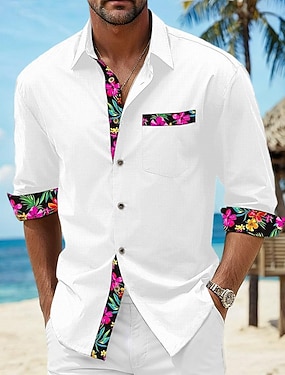 Férfi Ing Vászon ing Nyári póló Strandruházat Gombos póló Virágos Vakáció Curise Fekete Fehér Arcpír rózsaszín Medence Hosszú ujj Hajtóka Tavasz & Ősz Ruházat splice