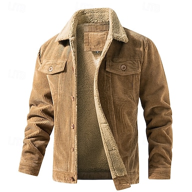 Férfi Télikabát Kordbársony zakó Polár dzseki Hétköznapi dzseki Szabadtéri Hétköznapi Melegen tartani Zseb Ősz Tél Sima Szüret Utcai sikk Térfogatcsökkenés Szokványos Fekete Khakizöld Kávé Szürke