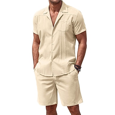 Férfi Guayabera ing 2 darab Ing készlet Alkalmi ing Nyári póló Fekete Fehér Medence khakizöld Rövid ujjú Sima Camp Collar Napi Vakáció Elülső zseb Ruházat Divat Alkalmi Kényelmes